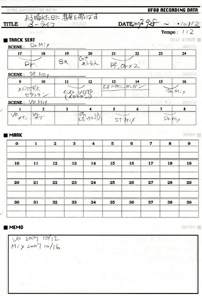 「β-ライフ」録音時のデータ表。