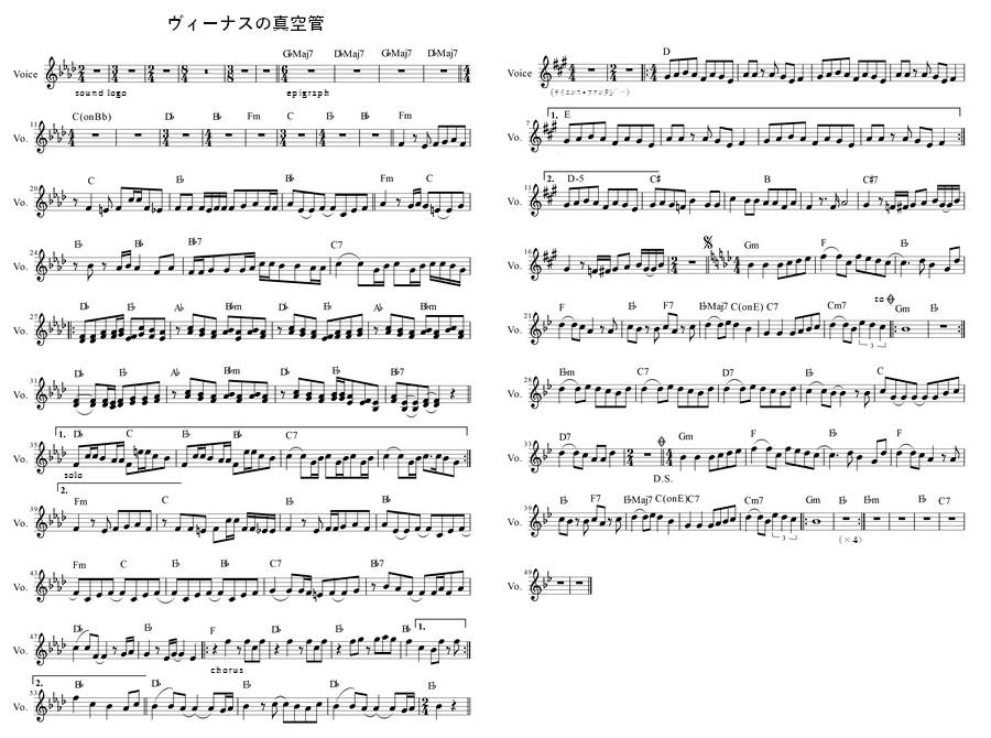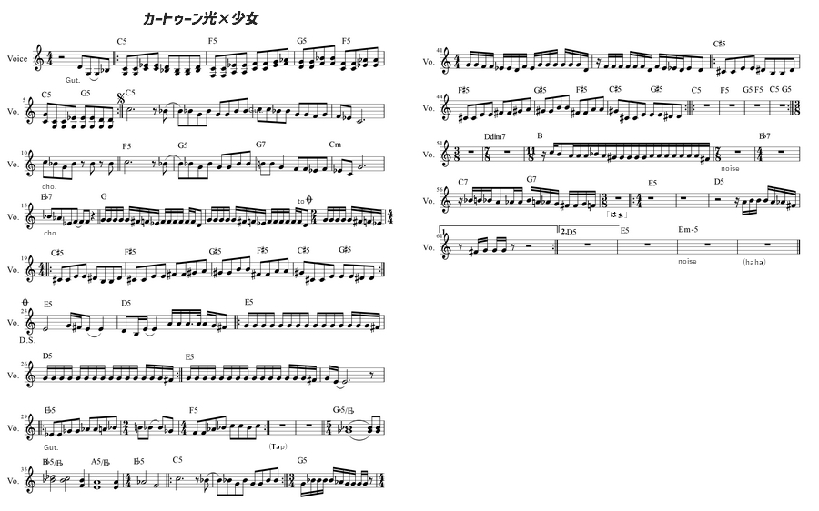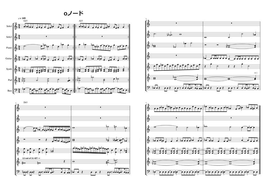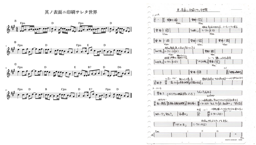 ※譜面を追加しました。「其ノ表面ニ印刷サレタ世界(歌唱箇所と構成表)」「οノード(冒頭一部を抜粋)」(2025年12月18日)