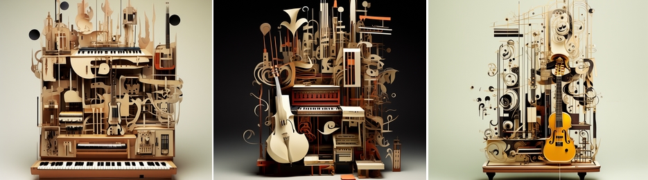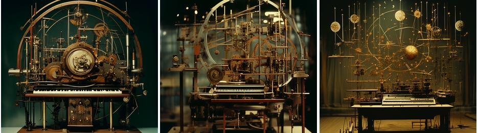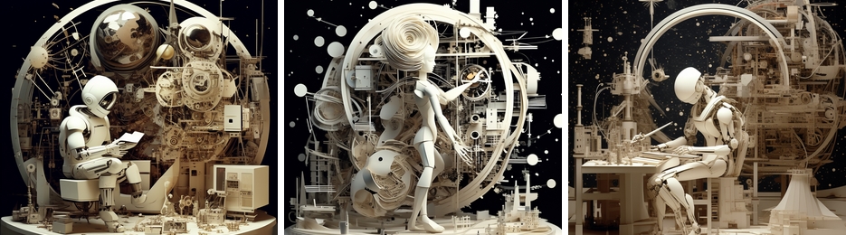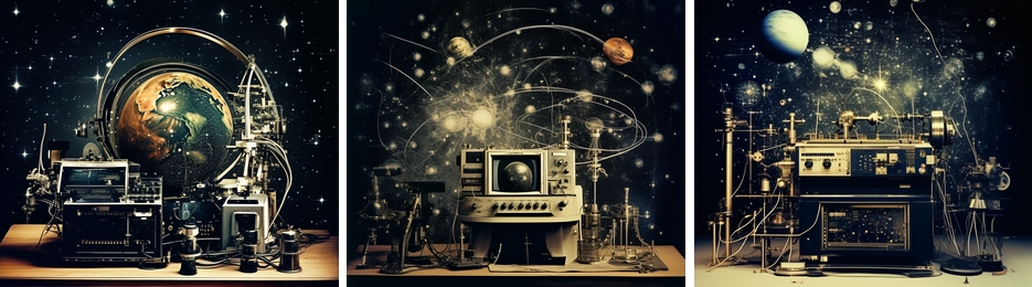 PixArt-αによるものです。下のStable Diffusionよりかなりきれいな画像ができるという印象です。テーマは音楽とコスモロジー、人間の未来などです。