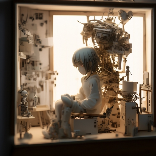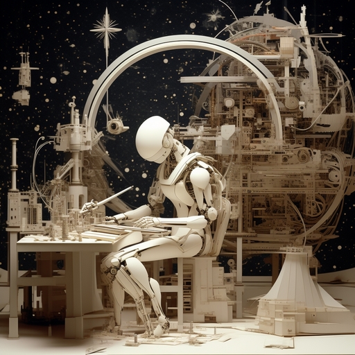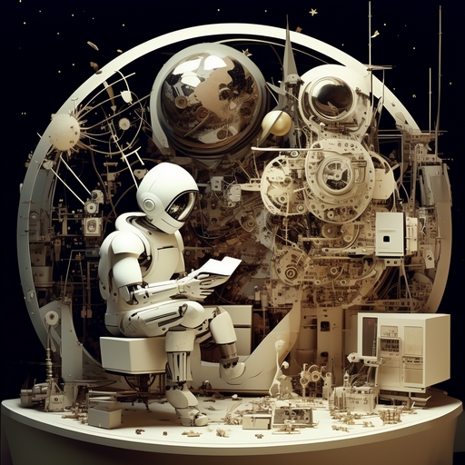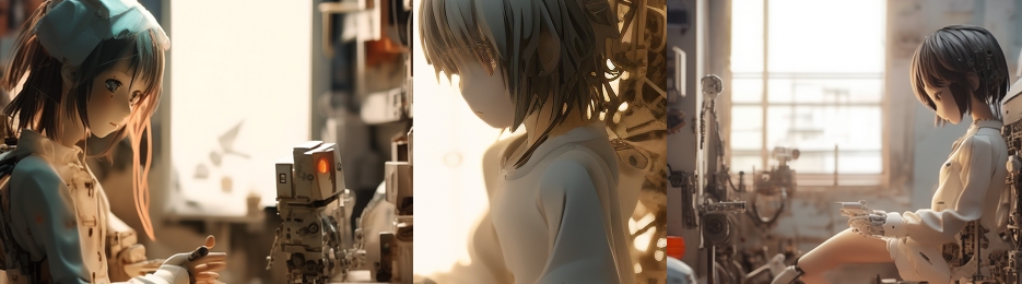 Stable Diffusionで生成したものです。オンラインで使えたので試してみたところ、これまでの人間の感覚で許容できる範囲を超えてるんじゃないかというくらい斬新な画像ばかり生み出してくれて、生成AIのすごさを実感。あまりにラディカルな画像が多かったため、出来るだけおとなしめのものを選んでヘッダーに使ってみたものです。プロンプトには「electronics, robot, automaton, anime girl, living machine, oldfilm, art, paper toy, paper box, astronomy,」などの言葉を使っています。